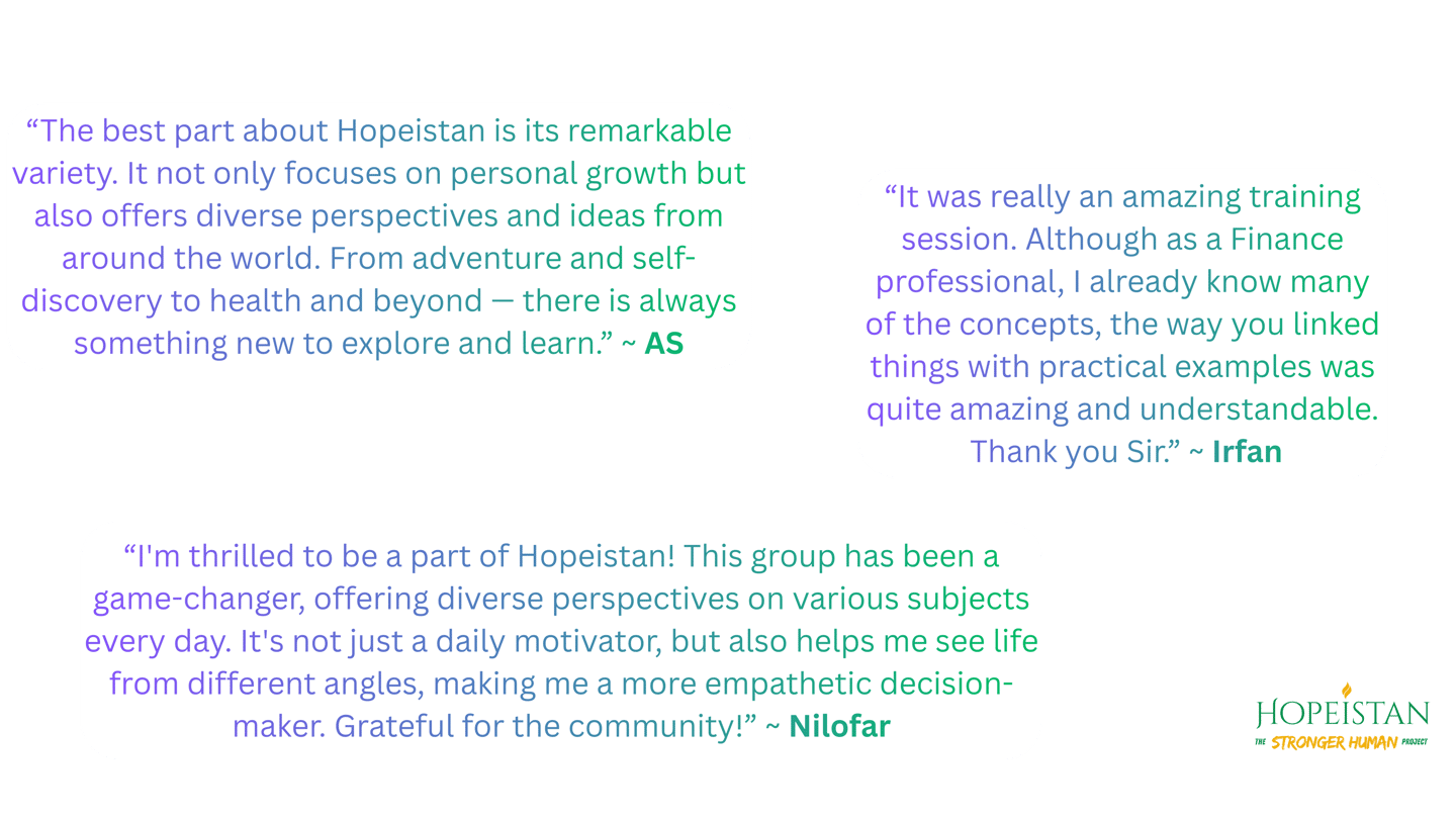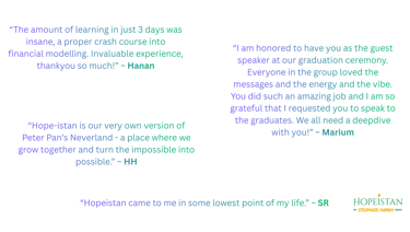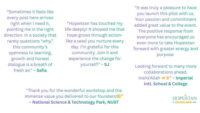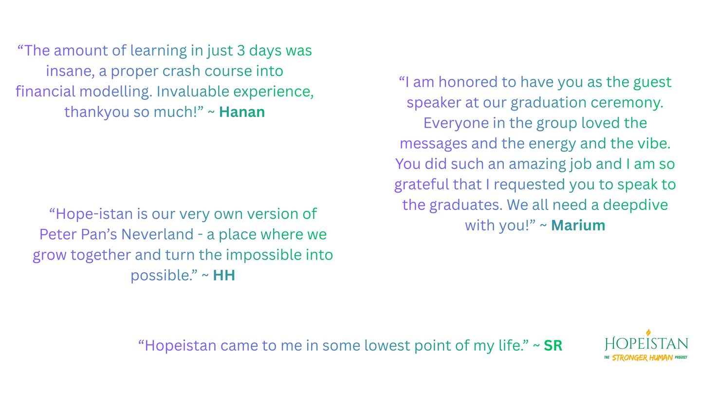 Testimonials from "Hopeistanis" & Trainees