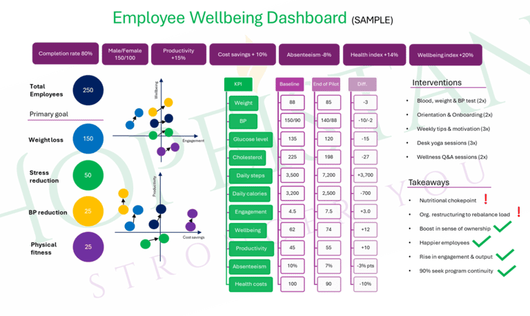 Diverse set of interventions and fun challennges designed to improve employee health and engagement.